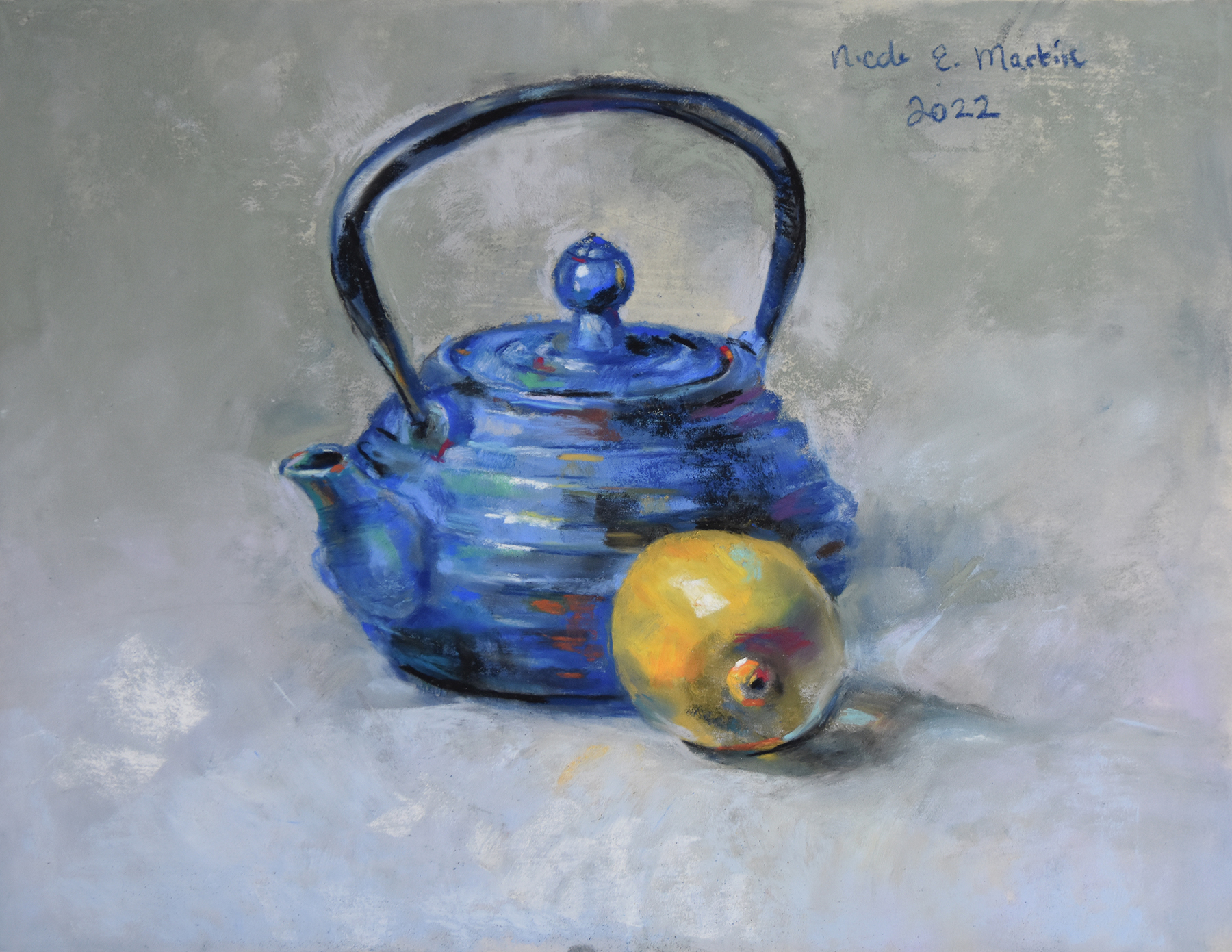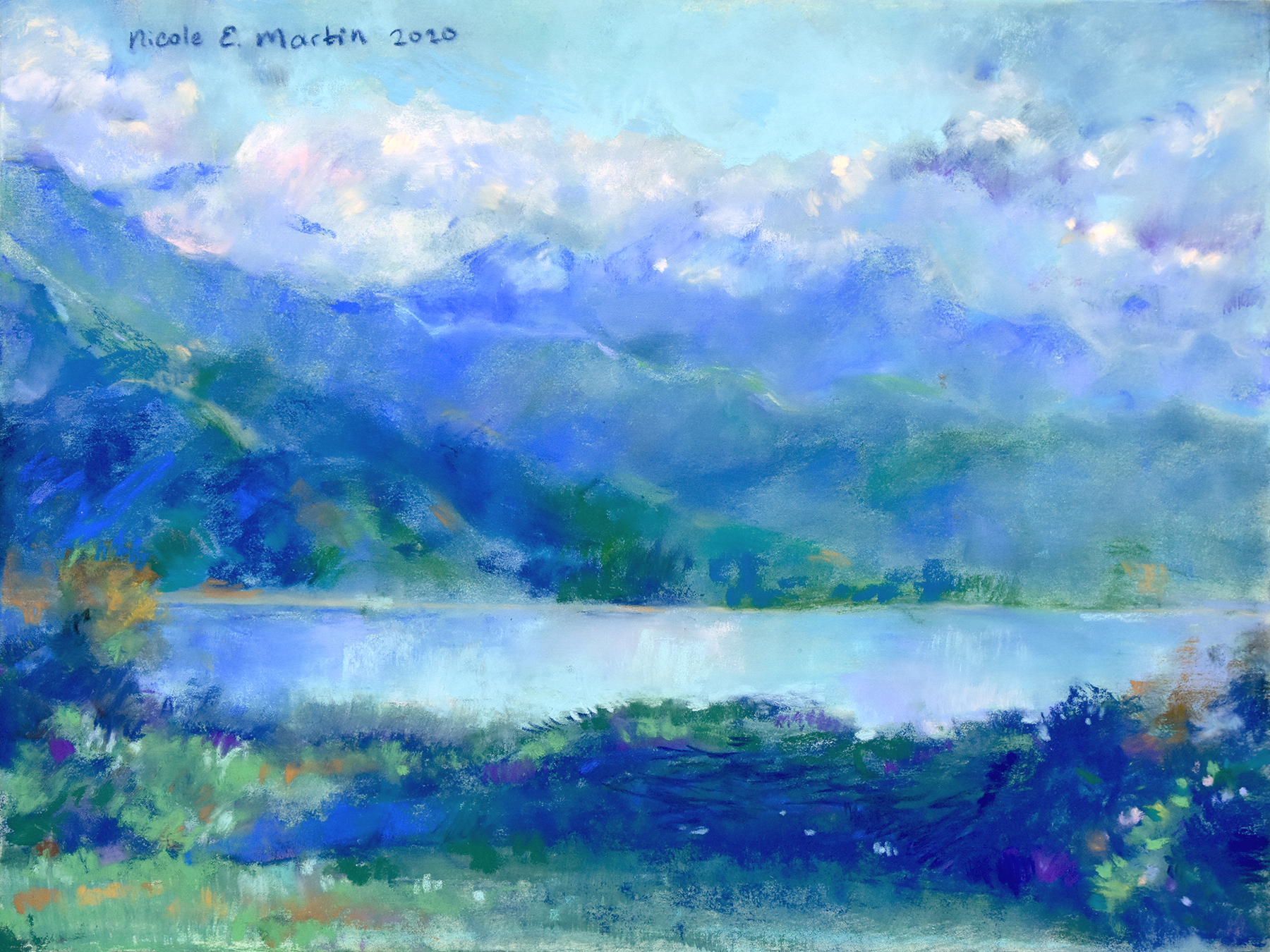 Original pastel painting of a purple and gold sunset as seen from a trail in Lime Ridge Open Space in Concord, California