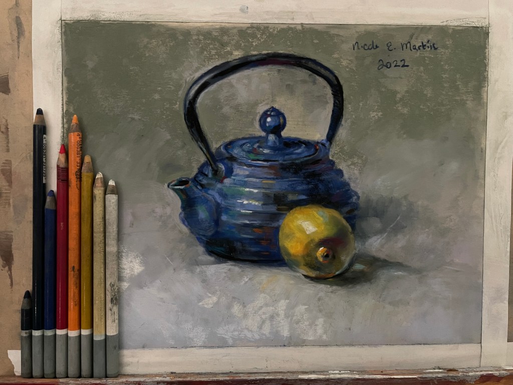 Hello, thanks for checking out my first blog post. This post is about how to make a realistic-looking soft pastel still-life painting in 10 easy steps. I’m using U-Art Sanded Pastel Paper (although any art paper specifically designed for pastels should work), Rebrandt Soft Pastel Half-Sticks, CarbOthello Chalk Pastel Pencils, and Sofft hand tools for blending.