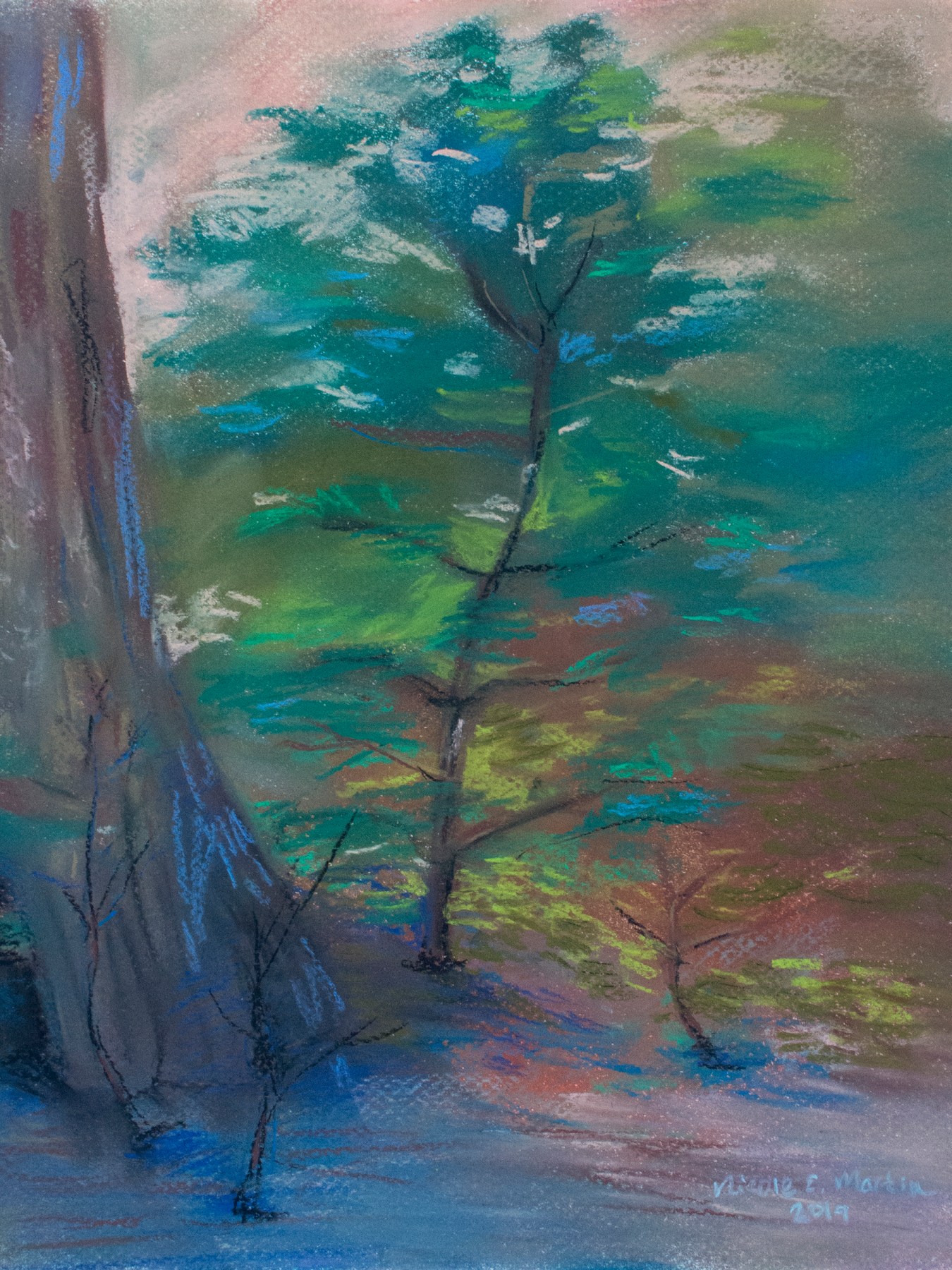 “Baby Pine at Butano” | 12″ x 9″ | Soft Pastels on Paper | © Nicole Elise Martin