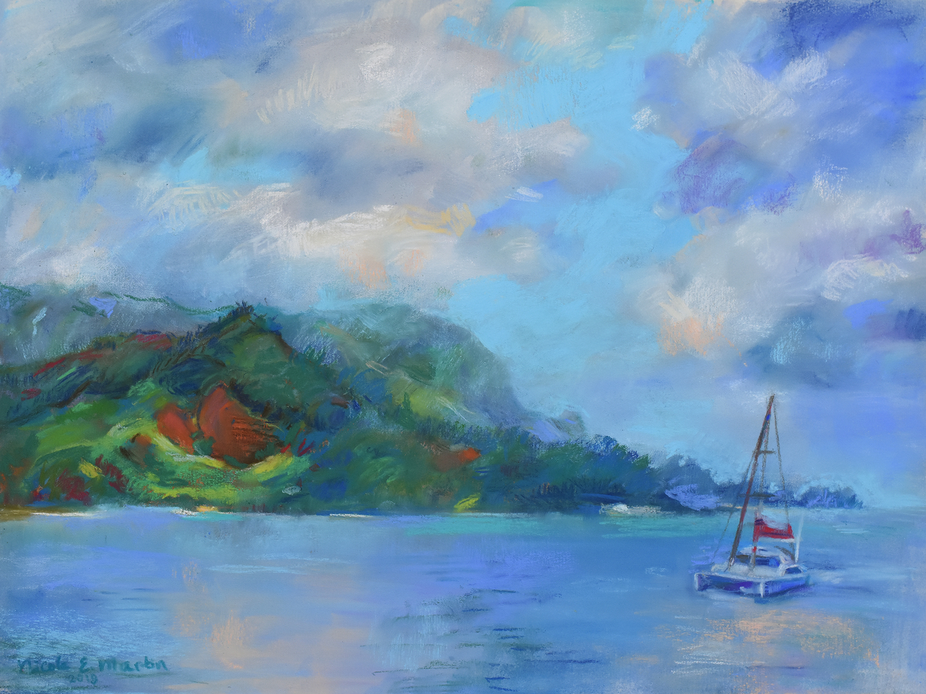“Boats on Hanalei Bay” | 9″ x 12″ | Soft Pastels on Sanded Paper | © Nicole Elise Martin
