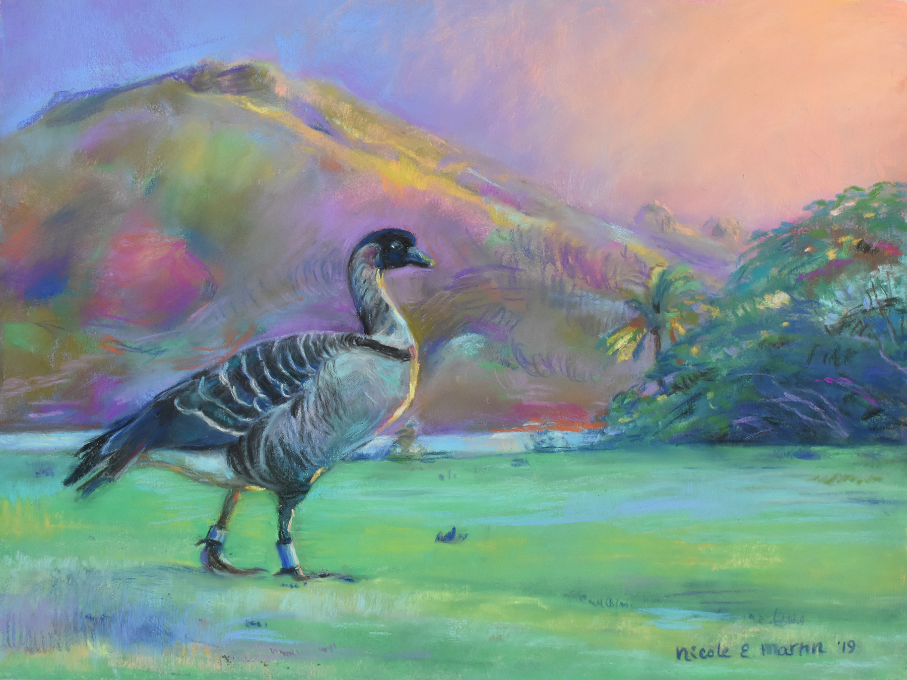 “Majesty of the Nēnē” | 9″ x 12″ | Soft Pastels on Sanded Paper | © Nicole Elise Martin